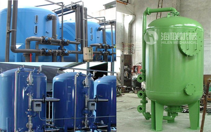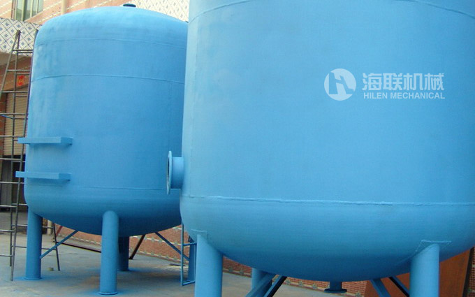 三、結構形式: 設備由本體、布水裝置、集水裝置、外配管及儀表取樣裝置等組成。進水裝置為上進水、擋板布水,集水裝置為多孔板濾水帽集水或穹形多孔板加承托層結構;設備的本體外部配管配帶閥門并留有壓力取樣接口,便于用戶現場安裝和實現裝置正常運行。